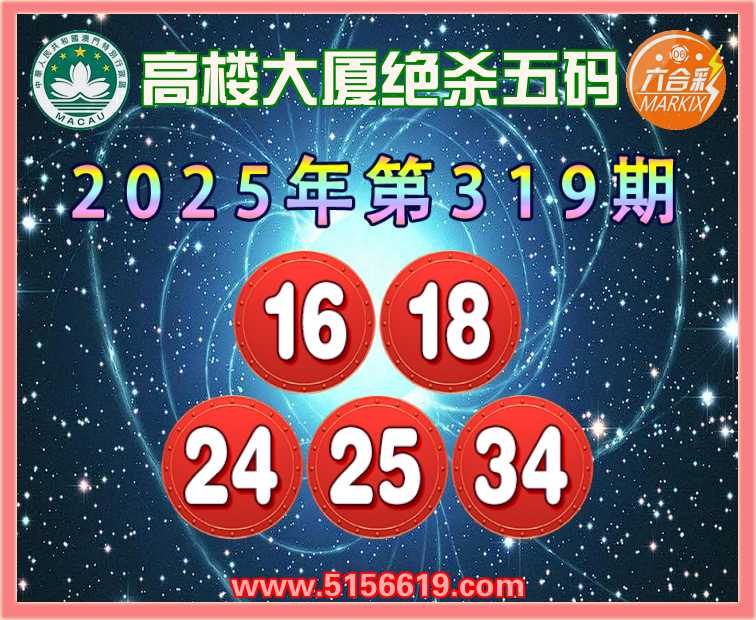 319期:『高楼大厦』 🍀绝杀五码🍀【16.18.24.25.34】开:00准