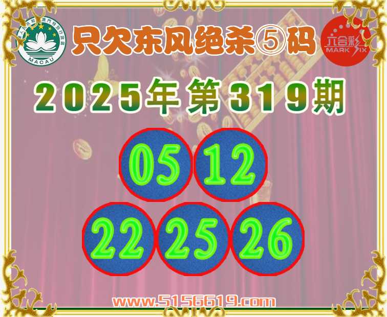319期:〖只欠东风〗 ✌️绝杀⑤码✌️【05.12.22.25.26】开:00准