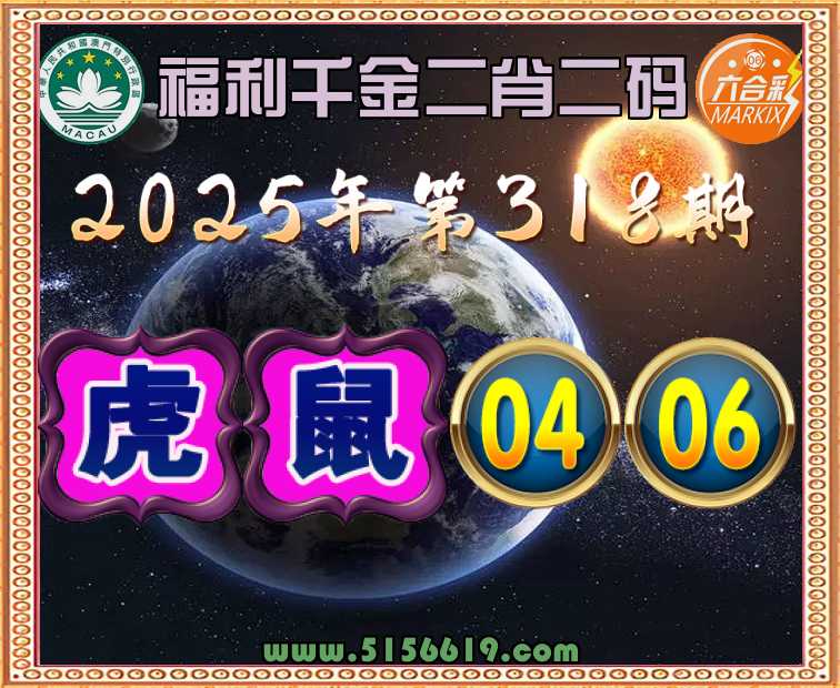 318期:《福利千金》 ✌️二肖二码✌️【虎】【04.06】开:鼠06准上榜高手