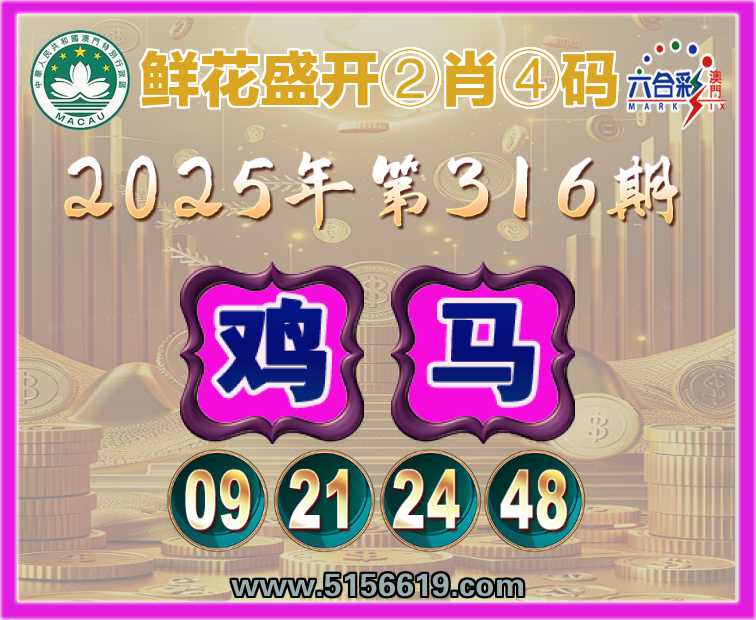 316期:『鲜花盛开』②肖④码⚽【鸡】【09.21.24.48】开:马24准上榜高手