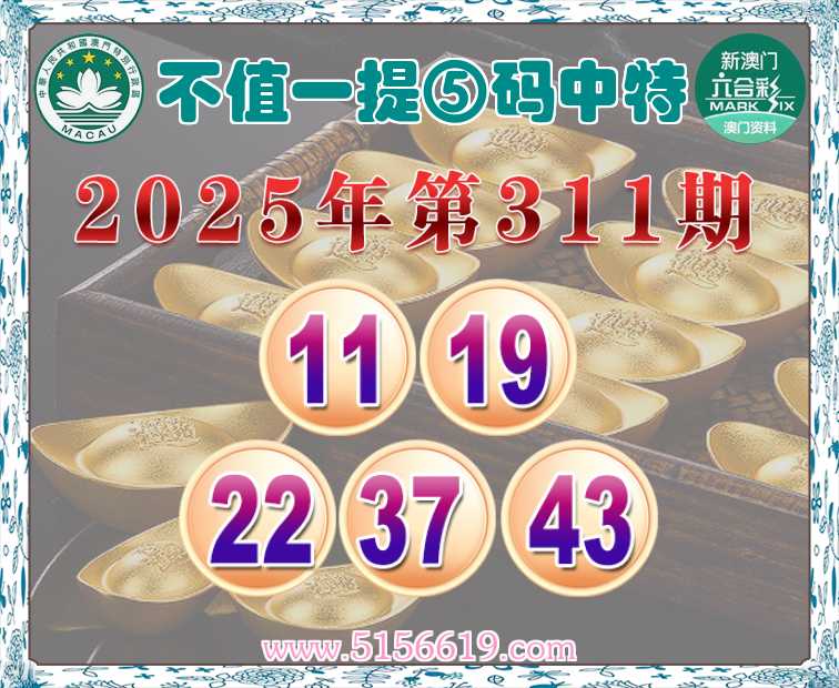 311期: 🏃‍♀️『不值一提』 🏃‍♀️⑤码中特🏃‍♀️【11.19.22.37.43】开:37准上榜高手