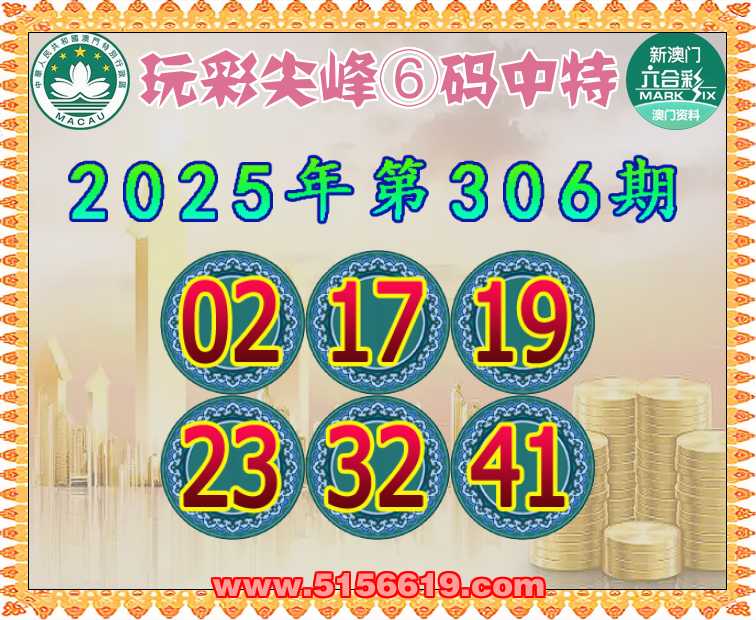 306期:【玩彩尖峰】 🥓⑥码中特🥓【02.17.19.23.32.41】开:17