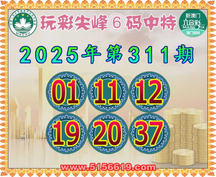 311期:【玩彩尖峰】 🥓⑥码中特🥓【01.11.12.19.20.37】开:37