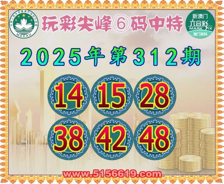312期:【玩彩尖峰】 🥓⑥码中特🥓【14.15.28.38.42.48】开:14