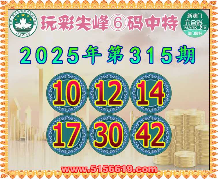 315期:【玩彩尖峰】 🥓⑥码中特🥓【10.12.14.17.30.42】开:04