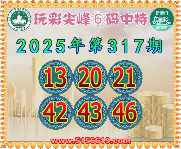 317期:【玩彩尖峰】 🥓⑥码中特🥓【13.20.21.42.43.46】开:18
