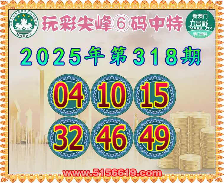 318期:【玩彩尖峰】 🥓⑥码中特🥓【04.10.15.32.46.49】开:00准