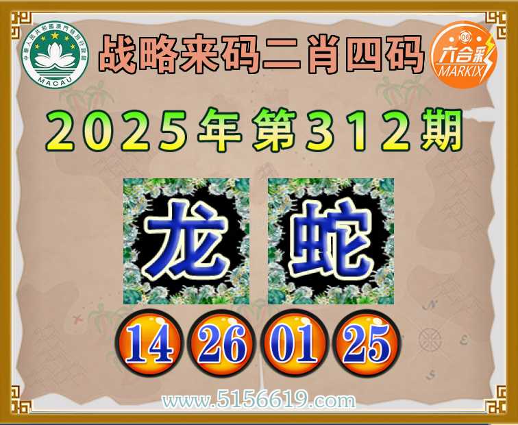 312期:〖战略来码〗 🥬二肖四码🥬【蛇】【14.26.01.25】开:龙14