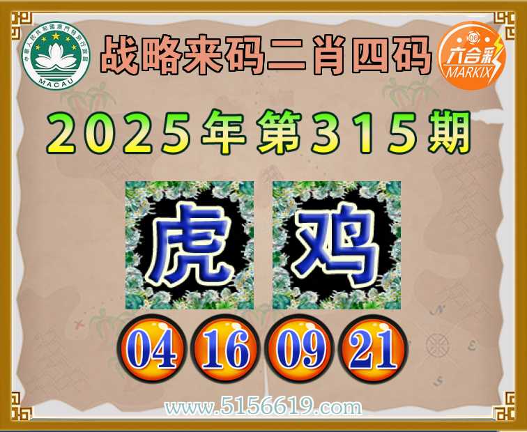 315期:〖战略来码〗 🥬二肖四码🥬【鸡】【04.16.09.21】开:虎04