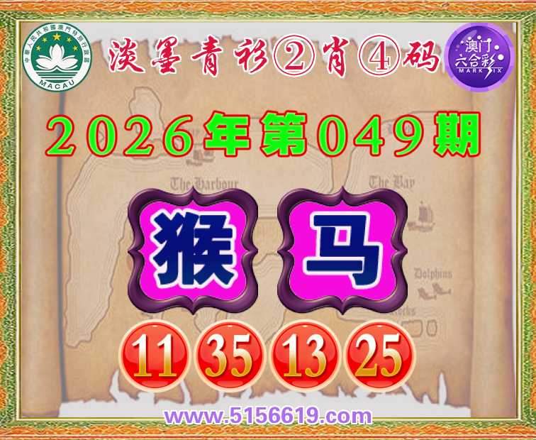 049期: 淡墨青衫 🌸②肖④码🌸【猴】【11.35.13.25】开:马13