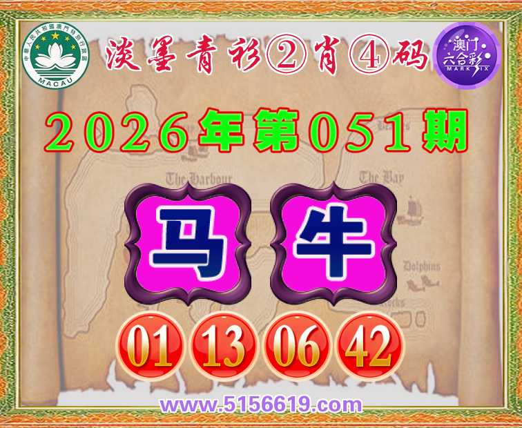 051期: 淡墨青衫 🌸②肖④码🌸【牛】【01.13.06.42】开:马01准上榜高手