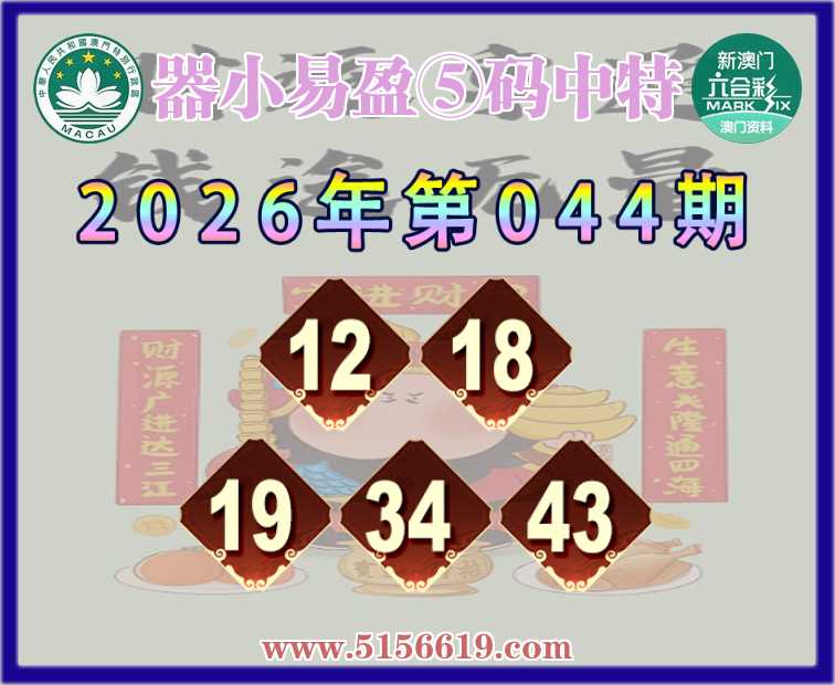 044期:〖器小易盈〗 👚⑤码中特👚【12.18.19.34.43】开:19