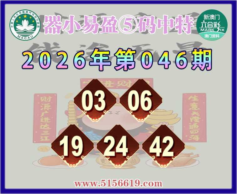046期:〖器小易盈〗 👚⑤码中特👚【03.06.19.24.42】开:03