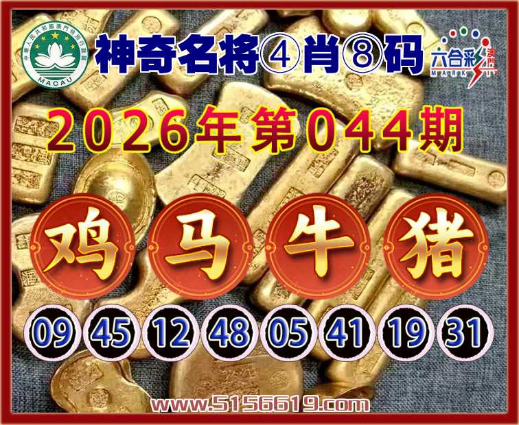 044期:〖神奇名将〗 🏵️④肖⑧码🏵️【鸡马牛】开:猪19
