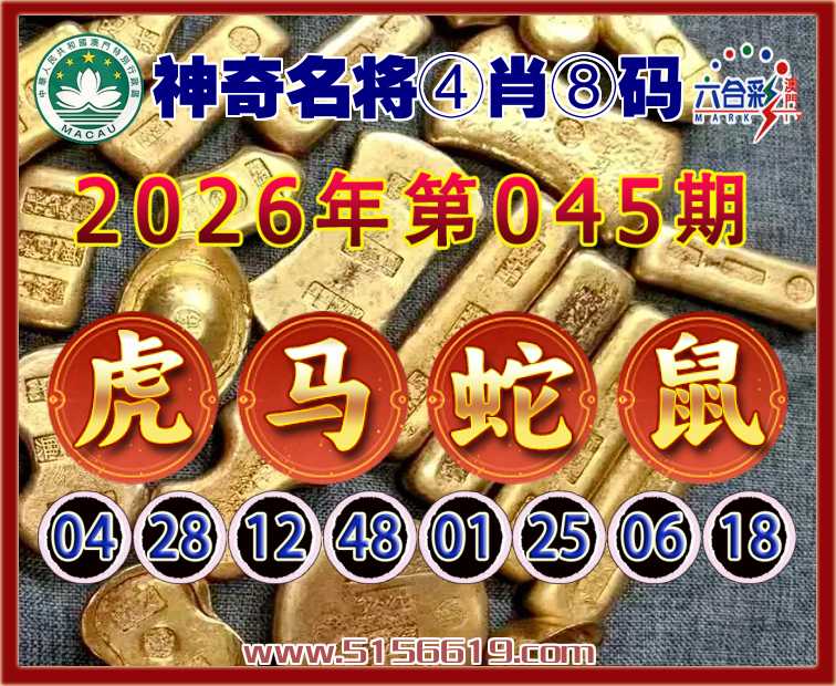 045期:〖神奇名将〗 🏵️④肖⑧码🏵️【虎马鼠】开:蛇01